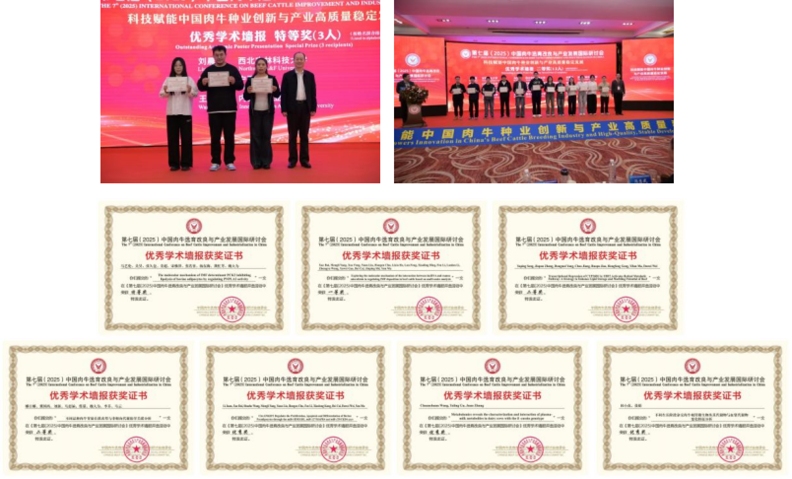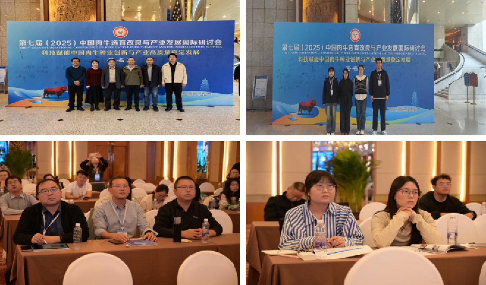 2025年10月31日至11月2日,由西北农林科技大学、国家肉牛改良中心主办的“第七届(2025)中国肉牛选育改良与产业发展国际研讨会”在陕西西安顺利召开。本次大会由西北农林科技大学、国家肉牛改良中心主办,来自中国、美国、英国、加拿大、日本、爱尔兰、韩国、哈萨克斯坦、巴基斯坦、贝宁等10个国家的300余位专家学者、企业家代表参加,我院魏大为副教授带领博士研究生白雪、李娟和硕士研究生娜日娜、马艺伦一行5人参加了本次会议。
