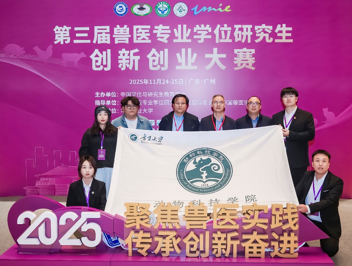 2025年11月26日,第三届全国兽医专业学位研究生创新创业大赛决赛在广州圆满落幕。本次大赛由中国学位与研究生教育学会主办,全国兽医专业学位研究生教育指导委员会、中国兽医协会专家工作委员会提供学术指导,华南农业大学承办。大赛以"聚焦兽医实践,传承创新奋进"为主题,吸引了来自全国50所高校和科研单位的60支队伍、600余名师生参与决赛角逐。