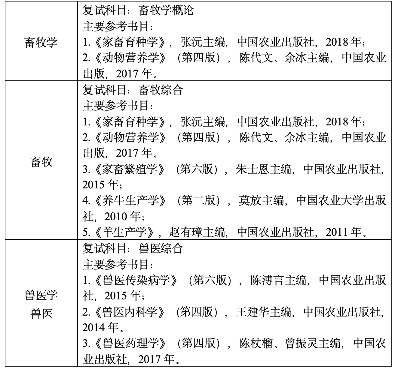 我院各学科(专业)复试科目如下: